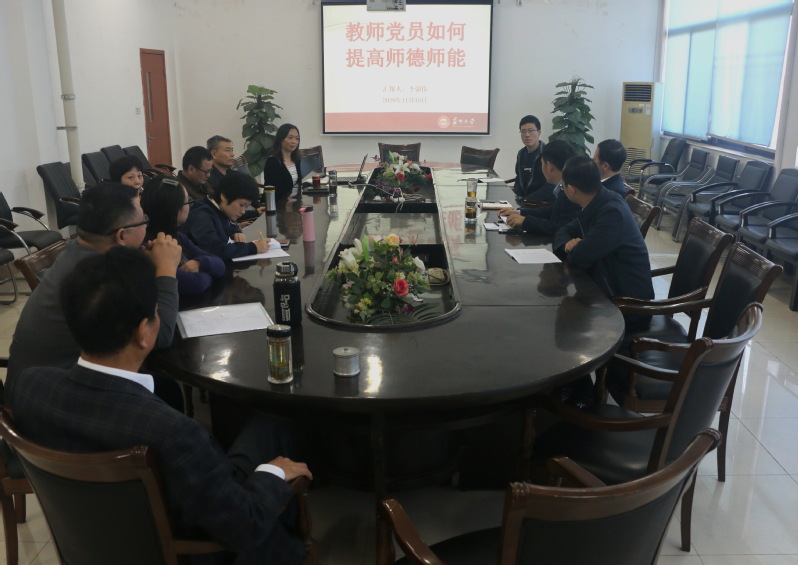 2020年11月18日工程训练中心在苏州大学阳澄湖校区第二教学楼B408会议室,举办全体党员参加,主题为“教师党员如何提高师德师能”的党课学习,中心党支部书记李强伟主讲。